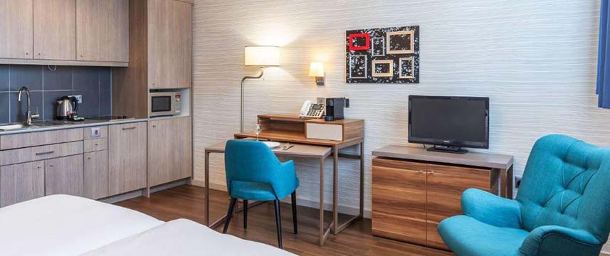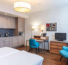 All of the 126 studios and one-bedroom apartments at the 4* Aparthotel Adagio Liverpool have well equipped kitchens and are fully air-conditioned. They also include free Wi-Fi and TV and have dining space. One-bedroom apartments have separate lounge area with sofa bed. All have contemporary style and although compact have been thoughtfully designed. In the lobby area there is a fully licensed bar, and a buffet breakfast is served every morning which can added during the booking process or at the hotel. During their stay guests can also use the hotel`s fitness room.