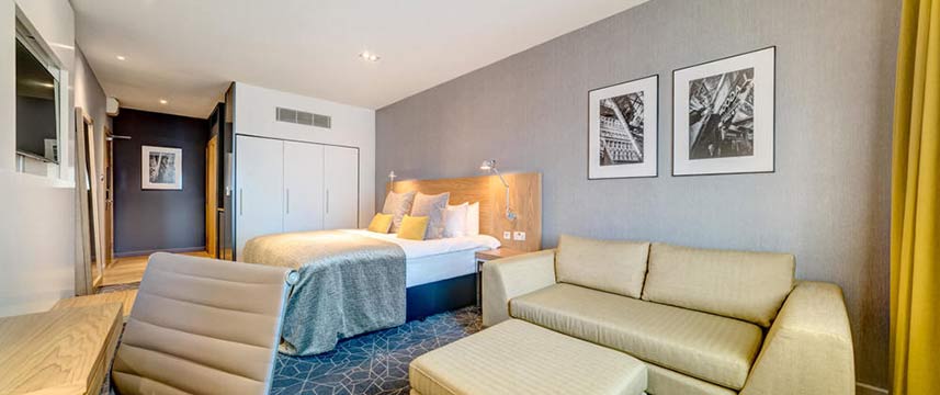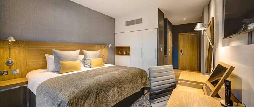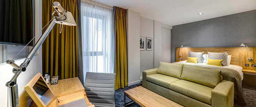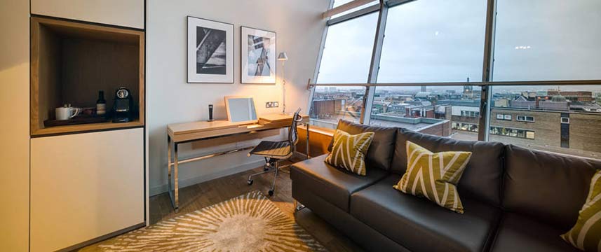 All of the rooms at the Apex City of Glasgow are fully air-conditioned and have king-size beds. Amenities include free Wi-Fi, tea & coffee making facilities, mini fridge, flat-screen TV and ensuite bathroom with walk-in shower. For great views over Glasgow there is a Duplex Suite, spread over two floors with spacious lounge area and extra amenities such as Nespresso machine, fully stocked mini bar and bathrobes & slippers. Breakfast, which can be added during the booking process, is served in the lobby restaurant with Continental buffet items as well as classic cooked dishes.