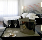 There are 217 guestrooms at Axor Barajas. Guestrooms have city views. Bathrooms feature makeup/shaving mirrors, bathrobes, and complimentary toiletries. In addition to complimentary wireless and wired high-speed Internet access, guestrooms offer multi-line phones, voice mail, and complimentary newspapers. LCD televisions are available in guestrooms. Air-conditioned rooms also include desks, blackout drapes/curtains, electronic check-out, and welcome amenities. Housekeeping is offered and guests may request irons/ironing boards. Cribs (infant beds) and rollaway beds are available on request. Notifications and Fees:The following fees and deposits are charged by the property at time of service, check-in, or check-out. -Self parking: EUR 15 per day