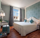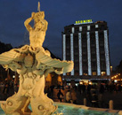 A look inside the Hotel Bernini Bristol`s 127 guestrooms helps to visualize the decadence of classical Rome. Period furniture, gold fabric walls with braid trim, antique rugs, brocade wall coverings, and Carrara and Alpine green marble in bathrooms tells of an obsessive relationship with beauty that has defined Rome through the ages. All guestrooms are equipped with Internet access. The Triton Fountain was designed by Bernini, who also designed the colonnade in the center of Basilica di San Pietro in the Vatican.