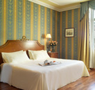 The Hotel Bernini Bristol in Rome, Italy, is a classical luxury hotel located in the center of Rome. The trickling of water from the 17th-century Triton Fountain sets the ambience as guests walk toward the hotel, which was founded in 1870. Principal leisure and business destinations in Rome are within a few blocks, including the Fontana Di Trevi, Via Del Corso (Rome`s most important shopping street), and the 17th-century Villa Borghese Gardens. Hotel The Hotel Bernini Bristol`s lobby features marble floors, 19th-century tapestries, Murano chandeliers and antique furnishings. The Restaurant L`Olimpo offers alfresco dining on its terraces, and Executive Chef Michele Simioli brings 40 years of Italian high-kitchen cooking to tables as Rome`s ancient cityscape looms dramatically in the background. The concierge is ready to arrange room service around the clock, hire a limousine, coordinate secretarial services or ring a boutique to check on a dress size. Five meeting rooms can accommodate up to 100 people. The Sirenuse Fitness Club features a sauna, steam bath, spa tub and gymnasium. The Bristol American Bar hosts live piano music and serves cocktails and afternoon tea..