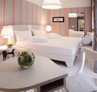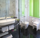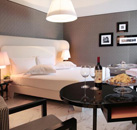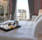 The hotel`s 236 guestrooms offer two-toned crocodile-leather headboards accented by golden-brocade bedspreads and curtains. Rooms afford views of the Piazza della Repubblica or the Monti surroundings. Private bathrooms vary in size, but all feature marble walls, floors and counters. Room amenities include satellite television and dial-up Internet access. Minibars are available in all accommodations. This hotel occupies a central location near some of Rome`s most beautiful churches. The Saint Mary Major Basilica is located right down the street. Across the street is the stunning St. Mary of the Angels church.