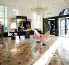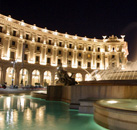 Exedra stands directly on the Piazza della Repubblica across from the Repubblica Metro station in Rome, Italy. The ancient Roman ruins of the Diocletian Baths and St. Mary of the Angels church frame this unique property. The hotel lobby glows with rich furnishings, white-columned walls, vaulted ceilings and subtle lighting. La Frusta, a restaurant designed by Adam Tihany, combines historic ambience with 21st-century vibrancy. Tazio Brasserie is adorned with snapshots of Tazio Secchiaroli, the forefather of paparazzi photography. The hotel houses a champagne bar lit with red and blue lights and distinguished by cascading crystal chandeliers. High tech meets history in the business center and function rooms that feature ancient stone walls and glass floors where the mosaic floors of the Diocletian Baths are visible below. Meeting rooms can accommodate up to 250 guests. The hotel`s Exedra Wellness Spa offers chromotherapy and revitalizing and purifying herbal teas and massages. Saunas, steam baths, a solarium and spa tubs offer relaxing retreats. The spa adjoins a rooftop pool that offers panoramic views of the city. Additional property amenities include transportation to Leonardo da Vinci International Airport for a fee and Town Car rentals..