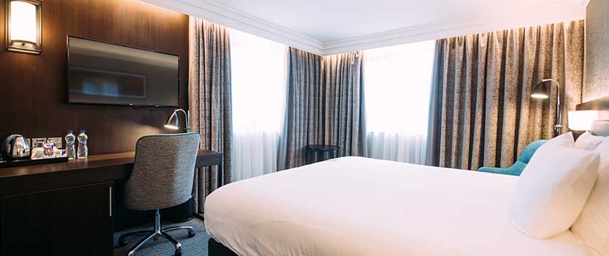 During their stay at the 4* Crowne Plaza Belfast, guests have complimentary use of the Bodyscape Health and Fitness Centre. Facilities include 20m swimming pool, jacuzzi, sauna and steam room. Spa facilities and treatments are also available, these should be arranged directly with the hotel. All rooms are fully air-conditioned and include free Wi-Fi, flat screen TV and tea & coffee facilities and mini fridge. Large Club Rooms and Suites with access to the Club Lounge are also available to book. The Green Room Restaurant on the first floor is open for breakfast and dinner every day, booking is highly recommended. For more casual dining the ground floor River Bar Lounge & Bistro is open from lunchtime daily. PLEASE NOTE: During November & December 2025 Maintenance will be carried out in the fitness centre, please check directly with the hotel for availability of amenities for specific dates.