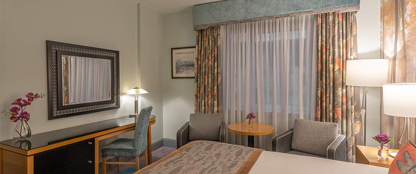 The 4* Crowne Plaza Dublin Airport hotel is set in 85 acres of mature woodland and parkland and is a 5-minute drive from Dublin Airport, with a free shuttle to and from the airport.(contact hotel directly for more details) There are good bus links to Dublin city centre which is just 15 minutes` drive. Visitors attending a sporting fixture or music event at Croke Park will find it is an easy bus journey to the stadium.