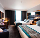 During their stay at the 4* Crowne Plaza Leeds guests have use of the Spirit Health Club which includes indoor heated pool, sauna and fully equipped gym. The 135 rooms all have contemporary decor and include, air-conditioning, free Wi-Fi, air-conditioning, mini bar, flat-screen TV, hairdryer, tea & coffee making facilities and ensuite bathroom with complimentary toiletries. The TAP Bar & Restuarant situated on the ground floor offers a casual dining menu of small and large plates. There is also an outside terrace and lounge area.