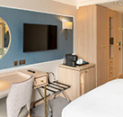 Bedrooms are fully en-suite with satellite TV, complimentary Wi-Fi, telephone, trouser press, voicemail messaging, hairdryer and refreshment tray. All rooms are fully air-conditioned except Economy Standard Rooms(fans and portable heaters are available if necessary). The hotel`s Pavillion Bar & Grill offers a wide range of Modern British and International cuisine. 24-hour Room Service is also available.