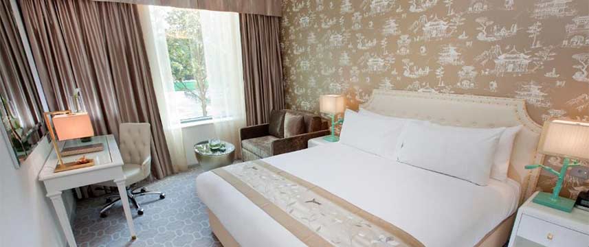 The 4* Dorsett Shepherds Bush combines it`s elegant grade II listed facade with contemporary design and hotel facilities. The 317 spacious rooms and suites, spread over 8 floors, are fully air-conditioned and all have ensuite bathrooms. In-room amenities include free Wi-Fi, 37inch LCDTV, mini-bar, hairdryer and tea & coffee making facilities. Executive Rooms also have the added luxury of bathrobes and slippers. The Jin Bar in the hotel`s central atrium serves breakfast every morning and is also a comfortable space to relax for coffee or drinks before heading out for the evening. Within the hotel is the popular Shikumen, a stylish Chinese restaurant offering a wide and varied menu throughout the day and evening.