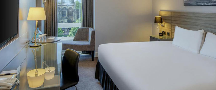 All of the rooms at the 4* Doubletree by Hilton Bristol City Centre are fully air-conditioned and have ensuite bathrooms with rain fall shower and complimentary toiletries. In-room amenities include 42-inch HD TV, free Wi-Fi, tea & coffee making facilities and hairdryer. During their stay guests also have complimentary use of the hotels Fitness Centre. Breakfast is served every morning in The Kiln Restaurant, in space previously occupied by a 17th Century glass kiln. The Temple Bar & Lounge is open throughout the day where guests can enjoy drinks, snacks and sandwiches.