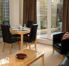 Fountain Court Apartments - Harris has 18 guestrooms. Televisions are equipped with satellite channels and DVD players. Guestrooms provide direct-dial phones and CD players. Guestrooms feature kitchens with microwaves, refrigerators, coffee/tea makers, and cookware/dishes/utensils. Bathrooms offer hair dryers. Additional amenities include irons/ironing boards and clock radios. In addition, amenities available on request include hypo-allergenic bedding and extra towels/bedding. Housekeeping is offered. Cribs (infant beds) are available. All guestrooms at Fountain Court Apartments - Harris are non-smoking.