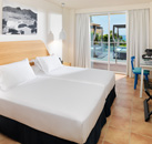 All of the 101 rooms at the H10 Blue Mar Hotel are modern, comfortable and boast sea views. Each room includes free Wi-Fi, LCD TV, iPhone/iPad docking station, radio, air-Conditioning, Nespresso coffee machine, minibar, safe, hairdryer, toiletries, bathrobe & slippers. Guests can enjoy an ą la carte meal in the hotels Sa Calma restaurant and cocktails in the new White and Blue bar with a terrace overlooking the Mediterranean Sea. The Despacio Beauty Centre is the perfect place to relax in the sauna, Jacuzzi or in the Turkish Bath, you can also indulge in massages and beauty treatments (pay for).