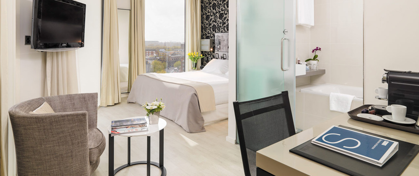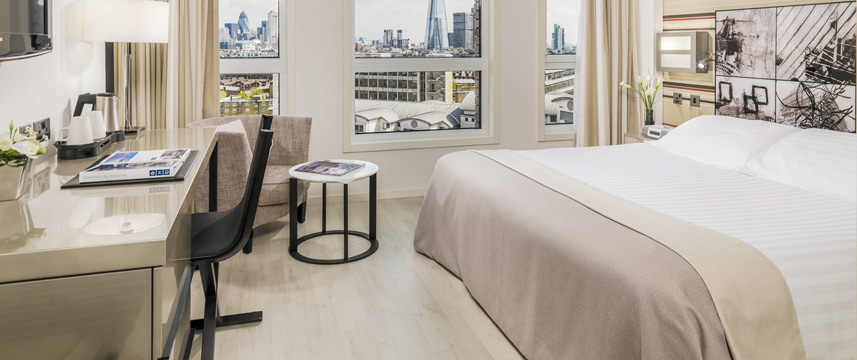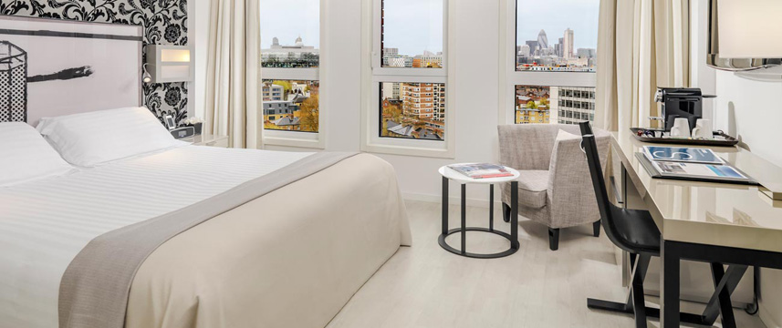 All 177 en-suite bedrooms at the H10 Waterloo are stylishly decorated and feature air conditioning, complimentary Wi-Fi, flat screen televisions and tea and coffee making facilities. The hotel`s restaurant, Three 0 Two, specialises in Spanish cuisine whilst the Circus Bar offers a range of drinks and light snacks in glamorous surroundings. The H10 London Waterloo also has a Sky Bar offering a great selection of drinks, cocktails and Tapas alongside unrivalled views across London. (closed on New Years Eve) PLEASE NOTE: Hotel refurbishment is taking place floor by floor until June 2026, with minimal impact to guests expected between 10am and 5pm. Some light work may take place between 8am and 10am.