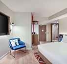 All of the rooms at the 3* Hampton by Hilton Bath City have contemporary decor and are fully air-conditioned. In-room amenities include free Wi-Fi, mini-fridge, tea & coffee making facilities and ensuite bathrooms with power shower and hairdryer. Large Superior rooms with extra amenities including soft drinks and snacks are also available to book. During their stay guests can make use of the Fitness Centre which is open 24 hours a day. All room rates include the hotel`s buffet breakfast, which is served in the lobby dining area. There is also a fully licensed bar serving a snack menu throughout the day.