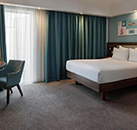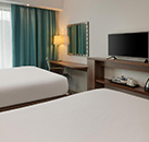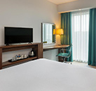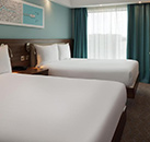 Each of the rooms at The Hampton Hilton Bournemouth are decorated in a contemporary style, they include a TV with pay-per-view channels, tea and coffee making facilities, work desk, air conditioning and an en-suite bathroom. Each bathroom comes with a hairdryer, shower and toiletries. All room rates include buffet breakfast, although the hotel does not have an evening restaurant there are snacks available from the lobby bar area. The hotel also has its own fitness centre which is complimentary for guests during their stay.