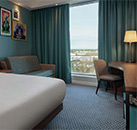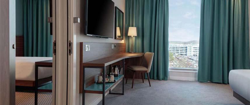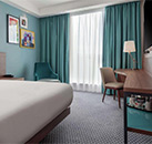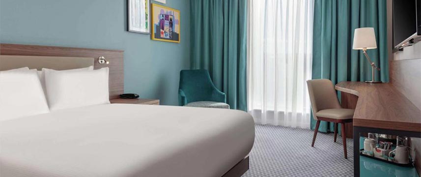 Each of the 240 rooms at the 3* Hampton by Hilton Edinburgh Airport are kept modern and simple for ultimate comfort during the guest`s stay. In room amenities include; free Wi-Fi, flat screen TV, tea and coffee making facilities, air conditioning, hairdryer and safe. Guests can make use of the fitness centre containing cardiovascular equipment and weights for improved fitness. There is also a modern on-site restaurant with a wide selection of meals to choose from for any time of the day and a 24-hour bar to unwind and enjoy a drink in. Every room booking at this hotel includes free breakfast with a selection of both hot and cold items.