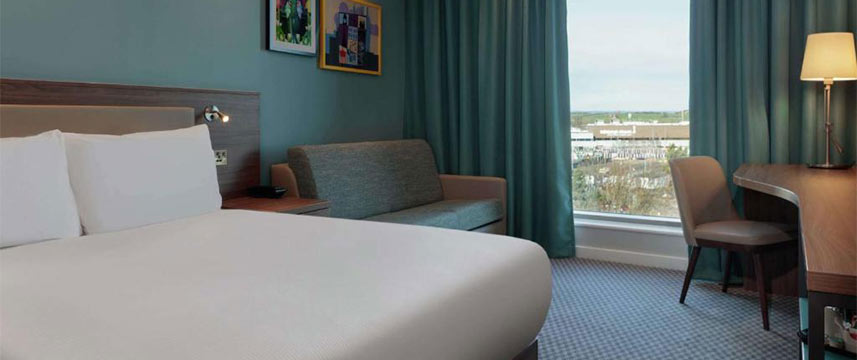 The 3* Hampton by Hilton Edinburgh Airport is conveniently placed just a 2-minute walk from the Airport, making it the ideal location for guests travelling. Visitors can take a 30-minute bus or tram to Edinburgh Centre, home to attractions such as Edinburgh Castle and Murrayfield Stadium, as well as an array of dining choices and shopping districts. Animal lovers can also take a 5-mile drive to Edinburgh Zoo.