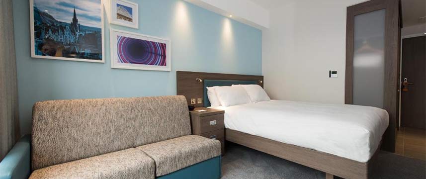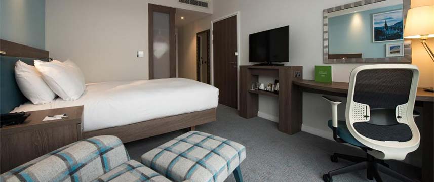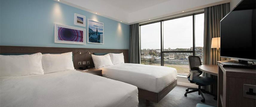 The Hampton by Hilton Edinburgh West End is a modern 3* hotel with spacious air-conditioned rooms, all of which have ensuite bathrooms with power shower and complimentary toiletries. In-room amenities include 39inch HDTV, free Wi-Fi, hairdryer, work desk and tea & coffee making facilities. All room rates include a generous buffet breakfast which features both Continental and cooked items. During their stay guests also have complementary use of the hotel`s fitness suite. The lobby bar and lounge which is open throughout the day has a relaxed atmosphere, and a varied dinner menu of international dishes is available in the restaurant.