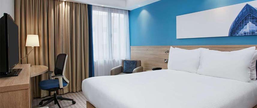 All room rates at the 3* Hampton by Hilton Glasgow Centre include hot buffet breakfast served in the lobby dining area. In-room amenities include free Wi-Fi, 32-inch flat-screen HDTV, tea & coffee making facilities and hairdryer. All rooms have ensuite bathroom with power shower. During their stay guests also have complimentary use of the hotel`s Fitness Suite.