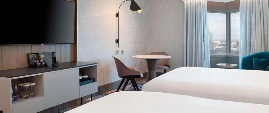 During their stay at the 4* Hilton Glasgow City Centre, guests have complimentary use of the hotel`s Health Club which includes swimming pool, sauna and steam room. All of the spacious rooms are fully air-conditioned and have ensuite bathrooms with walk-in shower. There is also free Wi-Fi, 56-inch flat-screen TV, hairdryer and tea & coffee making facilities. Deluxe rooms also include Nespresso machines and bathrobes & slippers. Guests staying in Executive rooms on the hotel`s higher floors also have access to the Executive Lounge which includes continental breakfast as well as drinks and snacks between 5pm & 7pm. The hotel`s restaurant, Whisky Mist Bar & Kitchen is a popular spot for cocktails as well as lunch or dinner.