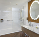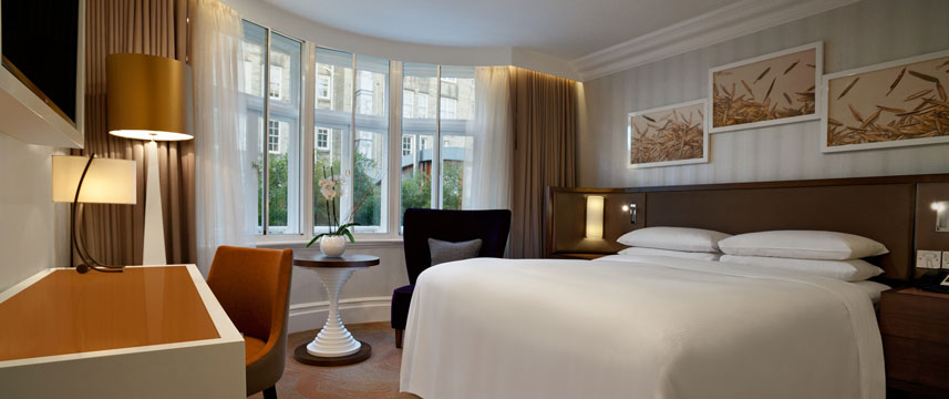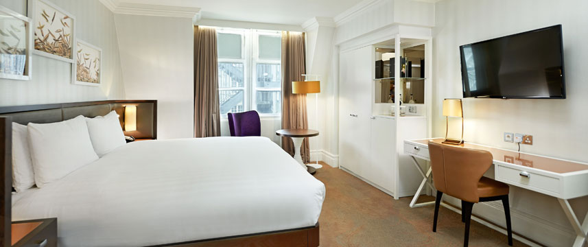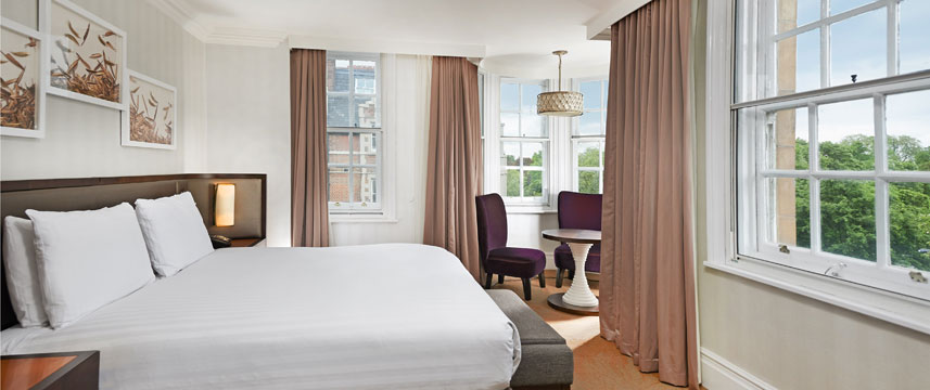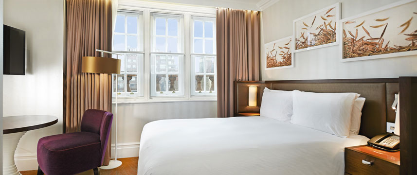 All 132 ensuite guest rooms at this delightful grade II listed Edwardian Townhouse retaining a classic twist with a warm and inviting atmosphere. All rooms are fully air-conditioned with plenty of amenities including, free standard Wi-Fi, work desk, HD TV, mini-fridge, hairdryer. Superior and Deluxe rooms also include Nespresso machines and the extra luxury of bathrobes and slippers. Bar snacks are served in the warm relaxed atmosphere of the Library Lounge. Aubaine Hyde Park offers a cosmopolitan style menu from breakfast through to dinner.