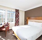 All 404 rooms at the 4* Hilton London Olympia are ensuite with in room amenities including: free Wi-Fi, flat screen TV, air conditioning, tea/coffee making facilities and a hairdryer. During their stay guests can make use of the on-site fitness suite, equipped with both cardio equipment and free weights. After a long day guests can relax with a signature cocktail in the hotel`s Society Bar or enjoy dinner in Society Restaurant. There is also a Costa Coffee bar located in the hotel lobby for coffee on the go.