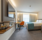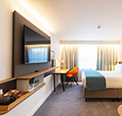 The 4* Holiday Inn Bristol Airport, which was fully refurbished in 2024 has 80 spacious guest rooms all of which are fully air-conditioned. In-room amenities include free Wi-Fi, flat-screen TV, tea & coffee making facilities, mini-fridge, hairdryer and all have ensuite bathrooms with complimentary toiletries. During their stay guests have use of the hotel`s Fitness Suite. Continental breakfast is served from 4am for early departures to the airport and a full buffet breakfast from 6.30am. An all day menu is available in the ground floor Spot Kitchen & Bar. Al Fresco dining is also available on the terrace overlooking the gardens. Shuttle service to Bristol Airport is available, charges apply, this should be arranged directly with the hotel.