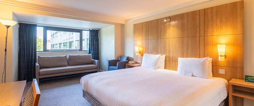 All of the 157 rooms at the 3* Holiday Inn Cardiff City Centre are fully air-conditioned and have contemporary decor. Amenities include, free Wi-Fi, flat-screen TV, tea & coffee making facilities and ensuite bathroom. Executive Rooms also include bathrobes and slippers. In the open plan lobby the Junction Bar & Restaurant offers casual dining including buffet breakfast and an a la carte dinner menu.