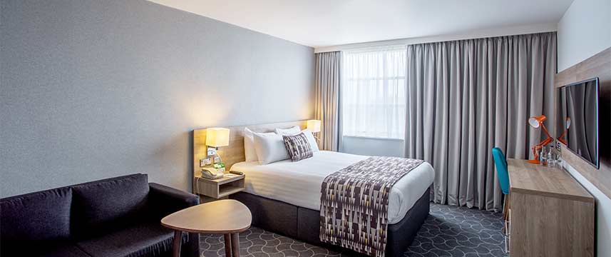Overlooking Shropshire Union Canal, the relaxed 3* Holiday Inn Ellesmere Port - Cheshire Oaks is easily accessed from the M53 motorway and approximately 15 minutes walk from Ellesmere Port Station. It is also a 30-minute drive to the centre of Liverpool, or 40 minutes by train. Taking a 10-minute walk along the canal, visitors can reach the National Waterways Museum to explore the history of the port town.