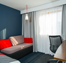 The hotel offers 149 bright and airy guestrooms with modern decor, all of which have ensuite power shower and individually controlled air conditioning, satellite television with pay per view in room movies, direct dial telephones, tea and coffee making facilities, hairdryer, iron and ironing board, standard wifi is also available for guest use. Guests can enjoy a relaxing evening drink in the contemporary bar and lounge area. Continental breakfast is served in the Great Room whilst next door, The Barn Owl Vintage Inn serves lunch and dinner. Free parking is available to guests and with 2 free child places, this fresh modern hotel offers superb family value.