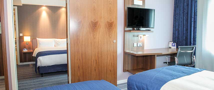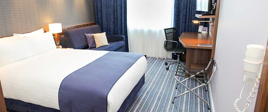 Each of the 300 rooms Holiday Inn Express Heathrow T5 have contemporary decor and have ensuite bathrooms with power shower. In-room amenities include free Wi-Fi, flat-screen TV, tea & coffee making facilities and hairdryer. All room rates include the hotel`s Express Start Breakfast served in the open plan lobby dining area. The Great Room Bar and Restaurant offer informal dining option where guests will also find a great selection of wine, beer, spirits and soft drinks.