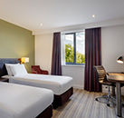 The 3* Holiday Inn Huntingdon Racecourse has 99 comfortable, air-conditioned rooms overlooking the Huntingdon Racecourse. Each room has a private en-suite and facilities including; flat screen TV, free Wi-Fi, complimentary toiletries, hairdryer and desk. The on-site restaurant has an all-day dining menu suitable for any meal of the day and snacks in between. The hotel also has a comfortable lobby/bar area for a chilled out coffee or lively drinks in the evening. There is a mini gym open 24-hours a day for guests to work on their fitness during their stay.