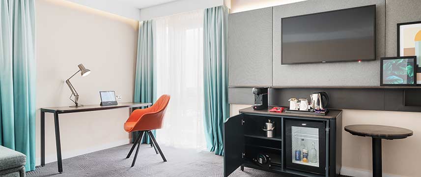 The 4* Holiday Inn Lincoln has 148 rooms, some with river views, all of which are fully air-conditioned. They also include free Wi-Fi, flat-screen TV, tea & coffee making facilities and ensuite bathrooms with shower. Larger Premium rooms with kingsize bed and stocked mini bar are also available. During their stay guests have use of the hotel`s Fitness Suite. Brayford View restaurant on the ground floor is open every morning for breakfast. There is also a fully licensed bar and lounge serving drinks and snacks throughout the day.