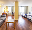 During their stay at the 4* Holiday Inn Lisbon can make use of the rooftop swimming pool which is open from July to September and relax while taking in the city views from the Highview Bar. All of the 169 spacious rooms feature a simple modern colour scheme as well as free Wi-Fi, flat screen TV, hairdryer and tea & coffee facilities. Guests can also make use of the hotel fitness centre during their stay. Lounge 28 in the hotel lobby serves breakfast every morning and a casual dining menu of Portuguese and Mediterranean dishes, there is also a fully licensed bar. PLEASE NOTE: Tourist Tax of 4Euros per person per night (maximum 7 nights) applies at check-in
