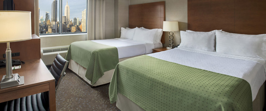 All of the 226 air-conditioned rooms at the Holiday Inn Manhattan 6th Ave - Chelsea are bright and contemporary in style, with either one king or two double beds. Each room features Free Wi-Fi, satellite TV with In Room Movies (surcharge), a work desk, telephone, hairdryer and coffee maker. The hotel benefits from a business centre, allowing guests to catch up on any work, as well as a fitness centre for anyone looking to workout during their stay at the hotel. The hotel has two onsite restaurants, Amore Trattoria, which is conveniently located in the hotel lobby and serves traditional Italian Cuisine and speciality cocktails. Restaurant by Butler open for breakfast, lunch and dinner offers a variety of dishes and small plates with a an American Fusion themed menu. Please Note: Minimum check in age is 21.