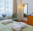 Hotel Beseda has 135 guestrooms. Televisions are equipped with satellite channels. Guestrooms provide complimentary wireless Internet access, direct-dial phones, and in-room safes (accommodate laptops). All guestrooms provide sofa beds and desks. Bathrooms offer shower/tub combinations and complimentary toiletries. Guestrooms have city or courtyard views. Additional amenities include minibars, air conditioning, and windows that open. In addition, housekeeping is offered and amenities available on request include irons/ironing boards. Cribs (infant beds) and rollaway beds are available. All guestrooms at Hotel Beseda are non-smoking.