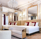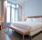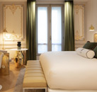 All of the 53 rooms and suites at the 5* Hotel Bowmann Paris are opulently designed and furnished in the 19th century elegant French style with ornate ceiling mouldings, hardwood floors and decorative use of marble and glass. This is combined with modern ensuite marble bathrooms with complimentary toiletries and bathrobes and 21st century room amenities. All the spacious, air-conditioned rooms have free Wi-Fi, espresso machines, flat screen TV with multi media options, mini bar and in-room safe. The restaurant and bar 99 Haussmann opening out onto the hotel`s peaceful garden terrace offers a creative menu of modern dishes, based on traditional French cuisine. There is also a Spa and Wellness Area within the hotel which includes a heated pool, gym and jacuzzi. Organic Spa treatments are available and should be booked directly with the hotel.