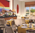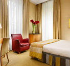 The Hotel Capo d`Africa has 65 guestrooms that have been designed in a classic contemporary style to create a welcoming and relaxing atmosphere. The guestrooms are decorated with warm tones of ochre, sand and saffron with modern, sleek wood furniture and object d`art adorning the walls. Each room features an en-suite bathroom with designer toiletries, air-conditioning, TV with satellite channels, mini bar and hairdryer. The hotel has a fitness room and also offers a variety of jogging routes for guests who want to keep active, while taking in the sites. Breakfast is served daily on the rooftop bar, meaning you can prepare for the day while taking in fantastic view of the Colosseum. Guests can enjoy a lunch at a la petite carte, which is open all day for refreshments or try Centrum Bar, for a pre-dinner drink. The hotel restaurant L`Attico Bistrot is open from 7-11pm from Monday to Saturday where the chef prepares modern Italian food using selected, high quality ingredients. During the summer it is also possible to dine al fresco on the panoramic terraces.