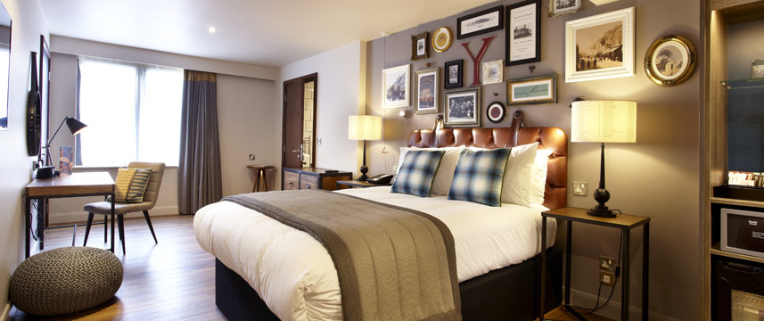 All of the 103 rooms at this 4* boutique hotel are fully air-conditioned and have modern ensuite bathrooms with rainfall showers, luxury toiletries and bathrobes and slippers. All rooms have 40" HD Smart TV, free Wi-Fi, mini fridge, tea and coffee making facilities and hairdryers. For a special occasion the extra spacious Premium Rooms have Superking beds and Nespresso machines for that extra luxurious feel. The hotel`s No 88 Walmgate Restaurant serves a full Yorkshire breakfast, snacks and salads as well as a full dinner menu.