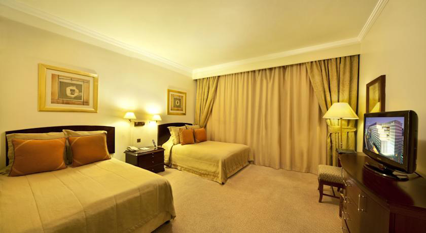 The Taj Palace is modern hotel situated on the northern side of Dubai`s creek in historical Deira. The bustling Gold Souk, various bazaars, and City Centre shopping mall can be found within two kilometres. Dubai Airport is 5 kilometres away.Hotel A health club houses a 24-hour fitness centre, while up on the rooftop there is a swimming pool, separate spa tub and children`s pool. Steps lead down from the rooftop to a spa where therapies on offer include signature traditional Indian massages, Balinese scrubs, and European massages. A mini shopping mall houses a gift shop, pharmacy and general goods store, and an Arabic perfume stall. Wireless Internet is available in the lobby, as well as individual workstations (surcharges apply). Complimentary valet parking (secure) is available on site. The hotel also provides a daily shuttle service to the city`s shopping malls and beach.Six restaurants on site offer dining options including Japanese, Italian, Indian, Turkish cuisine. Please note: There are no alcoholic beverages for sale within the Taj Palace Hotel`s restaurants and cafes. However alcohol consumption within the hotel is permitted..