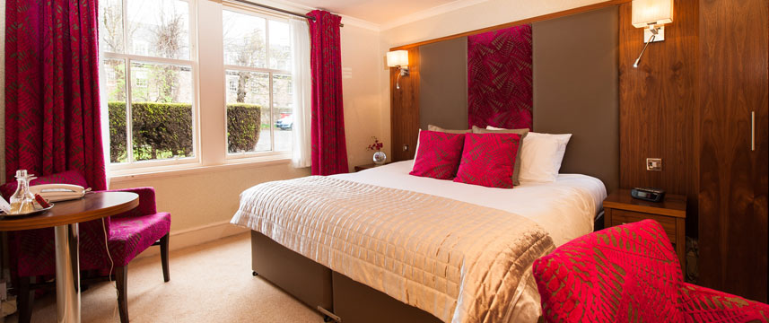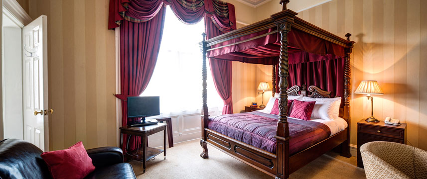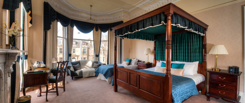 All of the rooms at Kildonan Lodge Hotel are individually designed to incorporate the charming features of this Victorian property. The Four Poster Rooms have a very traditional elegance whilst other rooms have a very contemporary feel. All rooms are en-suite with high quality toiletries. In-room facilities include flat screen TV, tea and coffee making facilities, complimentary water and IPod docking stations. Guests can enjoy a generous Scottish Breakfast every morning.The hotel`s restaurant, offers a dinner menu of classic dishes served every evening (except Sundays). After a busy day in the city guests can unwind and enjoy a drink in the hotel`s cosy lounge in front of the welcoming fireplace. Please Note: Some of the hotel`s double rooms are located in the lodge which is within the grounds. These rooms have the same facilities as those in the main building and guests may be allocated either.