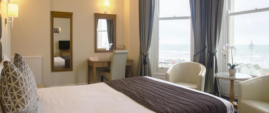 All 90 rooms in the Kings Hotel have contemporary decor and ensuite bathrooms, some also have sea views. In-room amenities include, flat-screen TV, free Wi-Fi and tea and coffee making facilities. The hotel does not have its own restaurant, but breakfast is served every morning and guests can enjoy a drink in the hotel`s seafront bar before heading out for the evening. There are plenty of restaurants and bars in the local area and hotel staff are happy to make recommendations.
