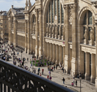 The Kyriad Gare du Nord hotel is superbly located opposite the Gard du Nord Train Station. As Paris`s main transport hub, this station offers guests easy access to several metro and train lines, including the Eurostar to London and a direct connection to Charles de Gaulle Airport. The hotel is well placed for the amazing array of restaurants, shops and sight-seeing that the city has to offer with the legendary cabaret shows of the Moulin Rouge only 15 minutes away via Metro. Paris`s most famous landmarks and attractions can be easily reached, with the Louvre Museum 20 minutes away via Metro. The Sacré Coeur is a 15 minute walk away and the department stores of Grands Boulvards, including Galleries Lafayette are only 20 minutes in foot.