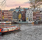 Overlooking the Amstel river, in the theatre district, the 4* Leonardo Eden Hotel is a popular hotel from which to explore the city, either on foot or using the Tram network. Central Station is just a short tram ride away. Just a couple of minutes walk from the hotel is Rembrantplein, popular for it`s numerous cafes, bars and nightlife. The Flower Market is just a 6 minute walk away.