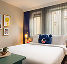 The 3* Leonardo Leidse Square Hotel has 71 compact rooms with quirky decor. All include free Wi-Fi, air-conditioning, Nespresso machine, mini fridge, hairdryer and ensuite bathroom with rainfall shower. Continental breakfast (which can be added to during the booking process) is available in the lobby breakfast room. There is also a fully licensed bar open every evening with a comfortable lounge area. There are vending machines in the lobby stocked with drinks and snacks. PLEASE NOTE:Tourist Tax is 12.5% of the room rate, payable on arrival at the hotel.