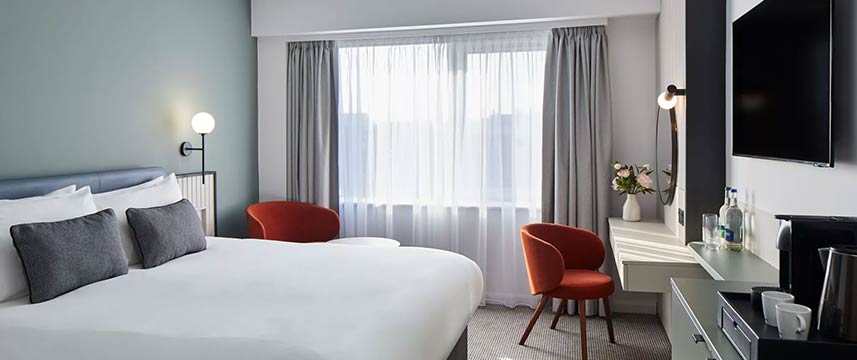 All of the 253 rooms at the 4* Leonardo Hotel Dublin Parnell Street (formerly Jurys Inn) are tastefully decorated and have ensuite bathrooms with complimentary toiletries. In-room amenities include flat-screen TV, free Wi-Fi, hairdryers and tea & coffee making facilities. Executive Rooms also include Nespresso machines, mini fridge and complimentary snacks. During their stay guests have use of the hotel`s fitness suite located on the 2nd floor, which includes free weights and treadmills. The Bar & Grill on the 2nd floor has floor to ceiling windows offering views across the courtyard.