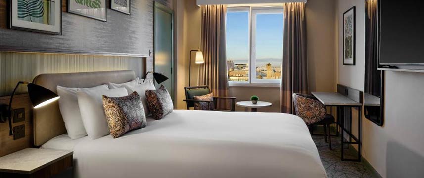 The 4* Leonardo Hotel Glasgow (formerly Jurys Inn) has 321 spacious rooms which are fully air-conditioned and have modern en suite bathrooms. Each room features free Wi-Fi, complimentary toiletries, hairdryer, flat screen TV and tea and coffee making facilities. An in-house Costa Coffee Bar means you can enjoy a tasty hot beverage and slice of cake whenever you like. The hotel`s restaurant offers a delicious selection of Scottish and contemporary dishes to suit all tastes, an ideal place to unwind after a busy day.