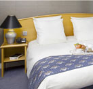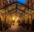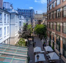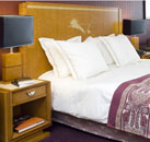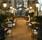 All 265 rooms are individually designed in Art Deco style with sumptuous furnishings in peaceful colours and elegant marble bathrooms and feature flat screen HD cable TV, ADSL, WiFi, on demand movies, safe, minibar, hairdryer, air conditioning, sound proofing and views overlooking the gardens. Executive rooms are more spacious with either garden or city views and also feature a reading corner with a desk, table and armchairs. The velvet benches and diamond chandeliers create a very stylish atmosphere in the restaurant, which is enhanced by the light filtering through the impressive atrium windows. On warmer days, lunch or dinner can be enjoyed in the garden surrounded by rose bushes, sculptures and traditional street lamps which transport you to another world.