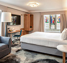 A converted Georgian mansion, the 4* London Chigwell Prince Regent Hotel offers 62 rooms combining historic elegance with modern hotel amenities. All rooms have modern ensuite bathrooms with complimentary toiletries and are comfortably furnished with luxurious bedding. In-room amenities include flat-screen TV, free Wi-Fi, work desk, hair dryer and tea & coffee making facilities. For a special occasion there are Suites with separate seating area. A generous buffet breakfast is served every morning in the hotel`s Brasserie, which overlooks the gardens, where a dinner menu of classic British dishes is also served. The Brasserie Bar is a great spot to relax after a busy day, where guests can also enjoy more informal dining options