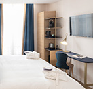 Each of the 40 modern rooms at the Mercure Paris Opera Lafayette are en-suite and air-conditioned. Each room includes Wi-Fi, mini fridge, water bottle, tea and coffee making facilities, TV and hairdryer. Privilege rooms also include a Nespresso machine. Although the hotel does not have a restaurant, breakfast is available each morning. Guests can also enjoy a drink in the Lafayette bar.