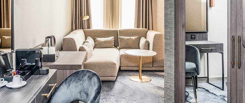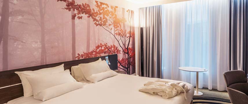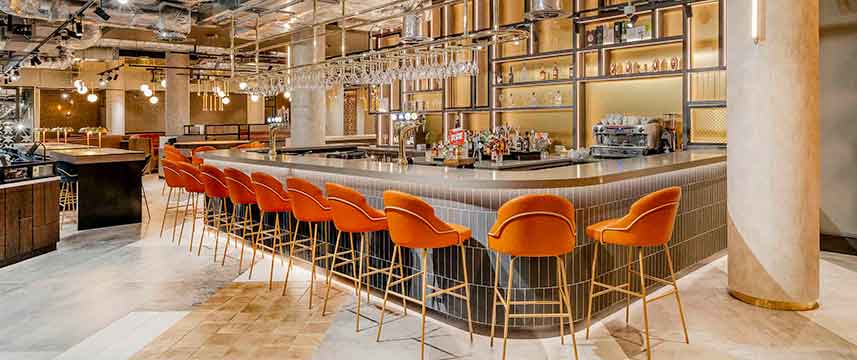 All of the 154 rooms at the 4* Novotel Leicester have contemporary decor and are fully air-conditioned. I-room amenities include free Wi-Fi, 55-inch LCD TV, mini-fridge, tea & coffee making facilities and hairdryer. Larger Superior rooms and Junior Suites with king-size beds also include Nespresso machine and extra bathroom amenities including bathrobes & slippers. During their stay guests also have use of the hotel`s Fitness Centre. NineB Restaurant is located on the ground floor and is open for breakfast lunch and dinner and also has a heated outdoor terrace. The stylish NineB offers an extensive cocktail menu.